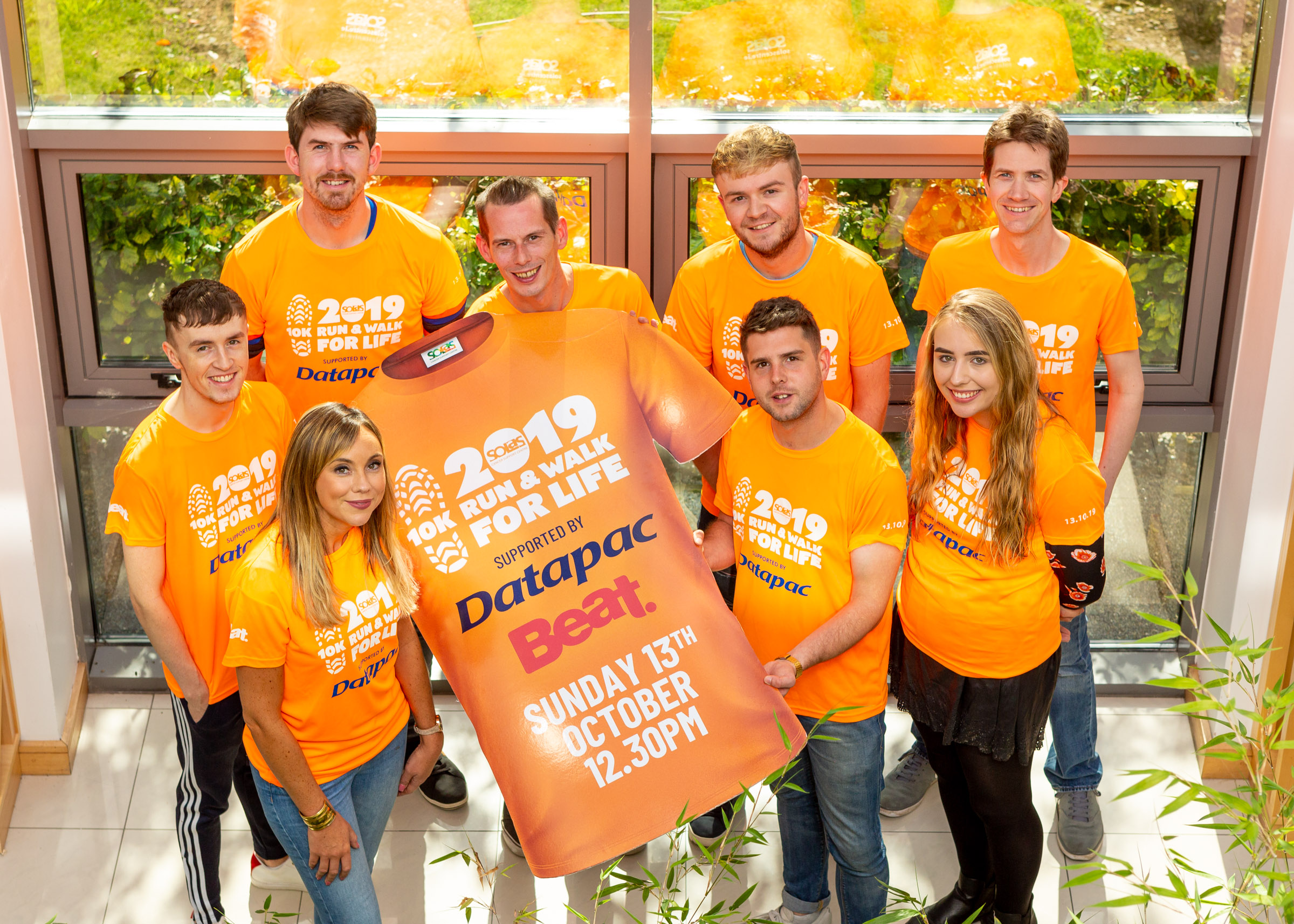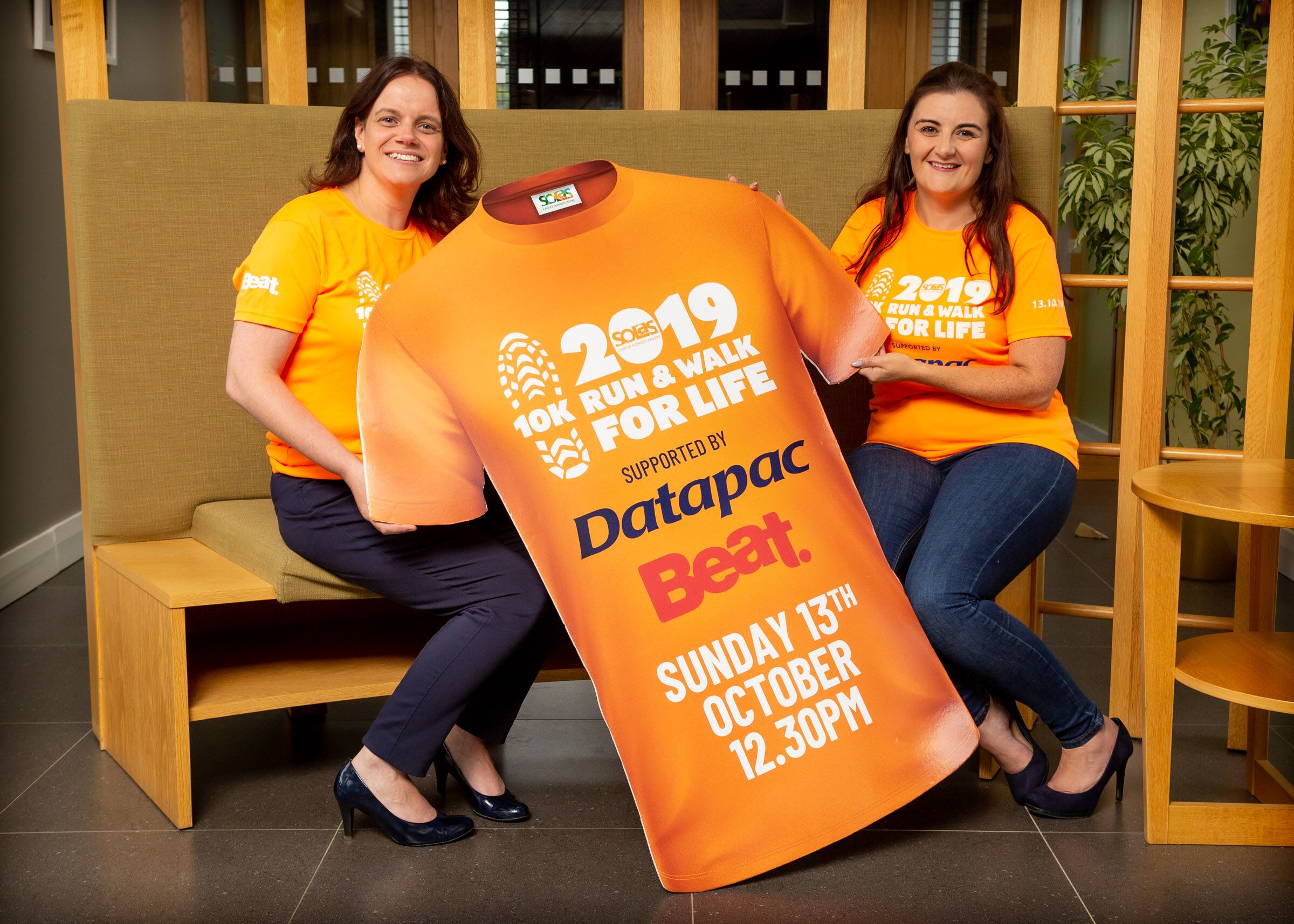 With less than four weeks to go the Solas Cancer Support Centre has taken delivery of the official event T Shirts as preparations build up for the Run and Walk for Life on Sunday 13th October. Karen O’Connor General Manager with Event Partner Datapac was pleased to officially launch this year’s T Shirt and to introduce a new vest top option for racer this year. “We are incredible proud to be associated with the Run and Walk for Life for the last 6 years and we look forward to seeing the sea of orange along the 10K route on the day,” she said.
